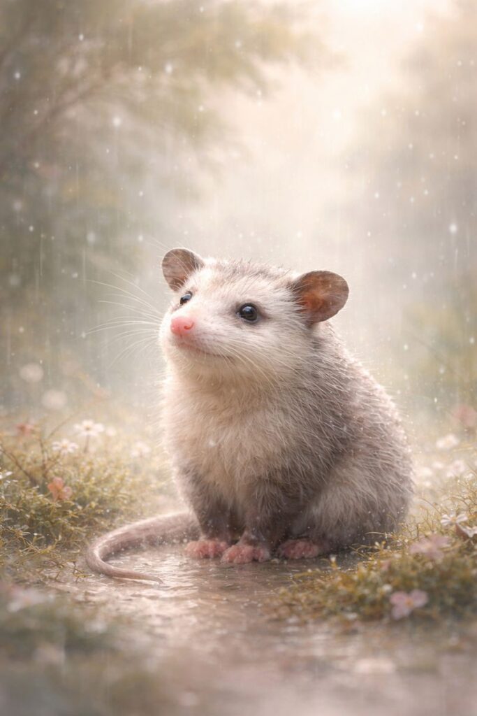 The little opossum in the rain will always live in my heart.